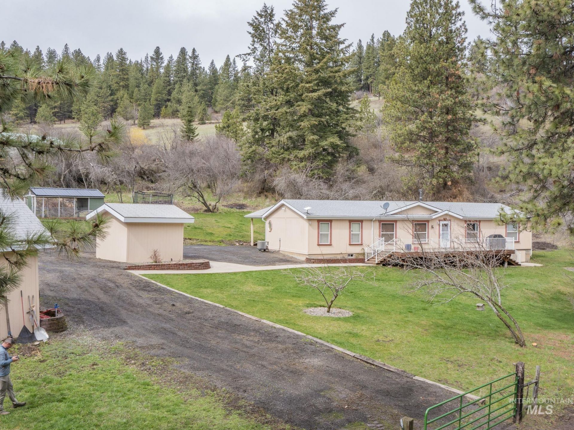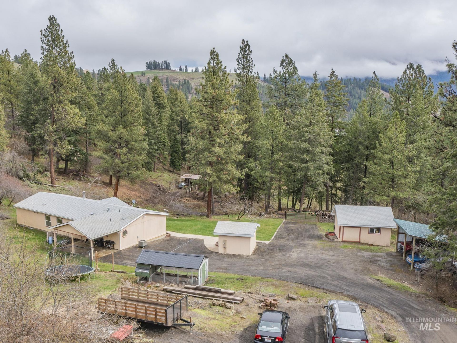 This single level 4bed/2 bath 1960sq ft home sits on 7.35 timbered acres, tucked among trees for natural seclusion, reduced wind, and serene living. Located just 10 minutes from Grangeville in the desirable Mt. Idaho area, this move-in-ready home offers comfort, convenience, and country charm. Inside, enjoy an open-concept main living area ideal for gatherings, primary suite with new carpet, updated flooring, tile in the kitchen, and refreshed front and back decks. Major upgrades include a water softener, pressure tank, filtration system, septic tank replaced in 2018, and a private well producing 50 GPM. Outdoors, the property includes a 12x32 barn with fenced horse area, small shop, chicken coop, dog kennel, wood storage, and two powered sheds (12x12 & 18x22). Seasonal creek, fruit trees, timbered land, and full fencing provide space for animals, equipment, and outdoor living. Quiet, scenic, and surrounded by nature?this property offers a true Idaho retreat.